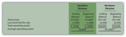 - Calculate average operating assets for each division. (Hint: land held for sale is not an operating asset.)