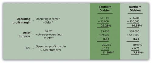 - The Southern division has the highest ROI (11.59 percent versus 7.88 percent at the Northern division), largely attributed to the high operating profit margin (22.28 percent versus 10.95 percent at the Northern division). However, the Southern division has the lowest asset turnover at 0.52 compared to 0.72 at the Northern division. The manager of the Northern division must look for ways to improve the profit margin for its products (e.g., increasing prices and/or reducing operating expenses). Conversely, the manager of the Southern division must look at ways to improve the utilization of assets to increase turnover.